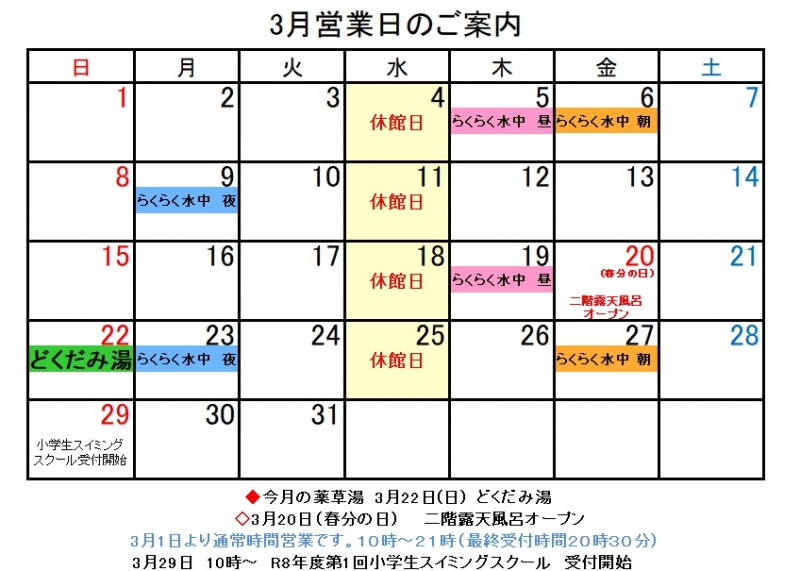 3月営業日のご案内